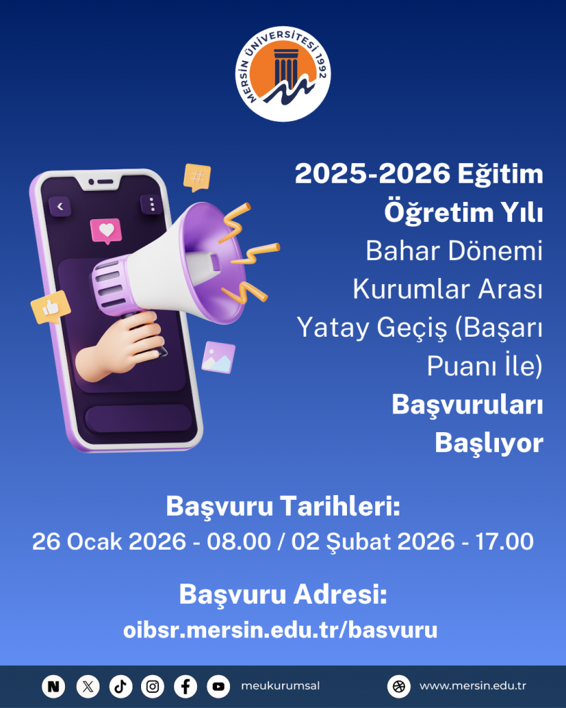 2025-2026 Eğitim Öğretim Yılı Bahar Dönemi Kurumlar Arası Yatay Geçiş (Başarı Puanı İle) Başvuruları Başlıyor