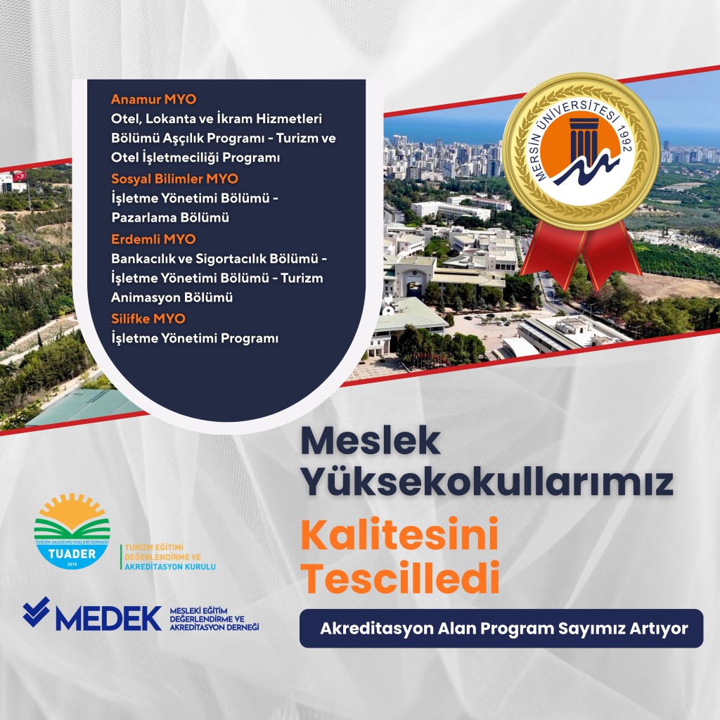 Mesleki Eğitim Değerlendirme ve Akreditasyon Derneğinin (MEDEK) yaptığı değerlendirme neticesinde akredite olmaya hak kazanan Silifke Meslek Yüksekokulu İşletme Yönetimi Programı, Sosyal Bilimler Meslek Yüksekokulu İ
