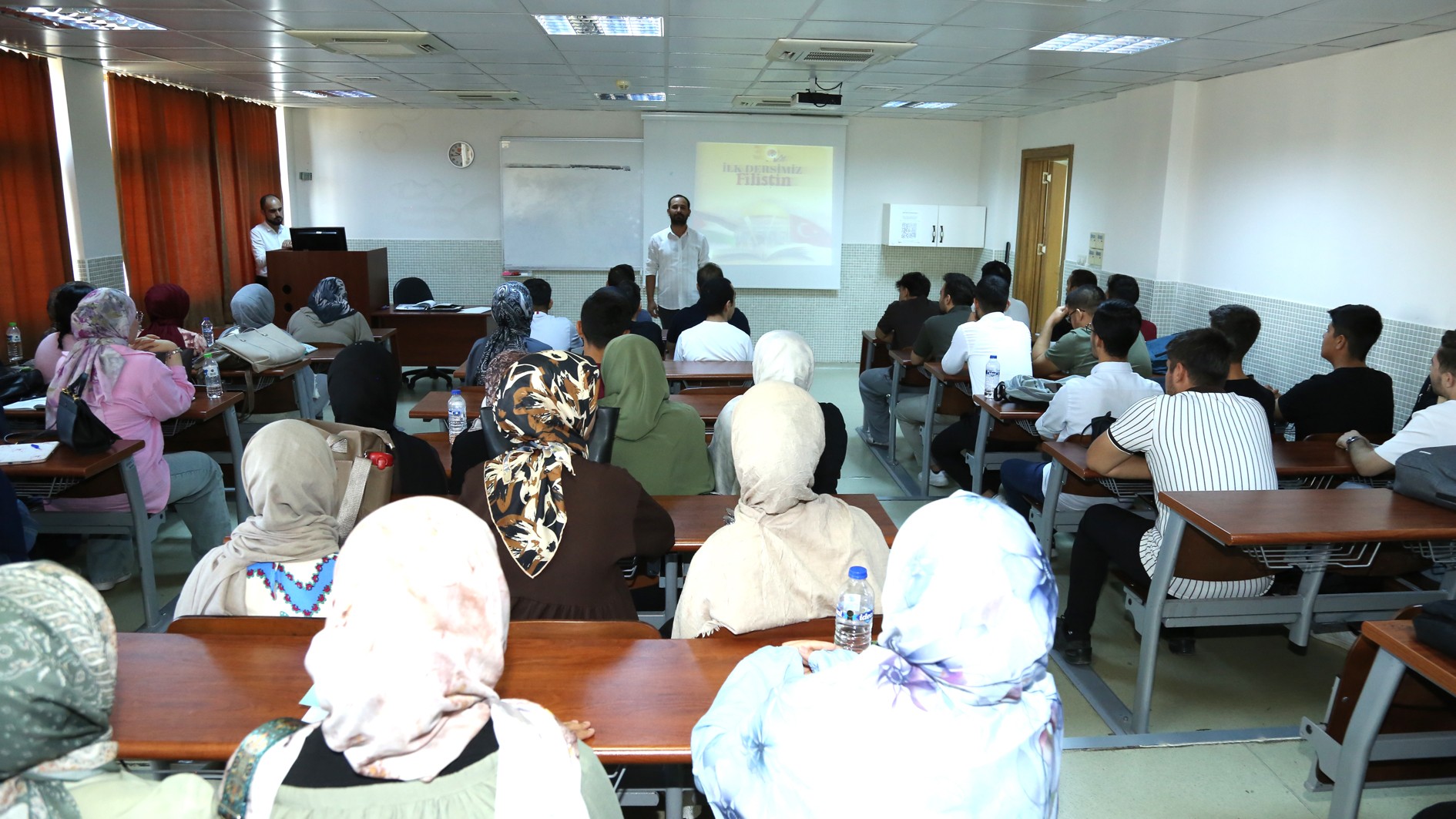 Yükseköğretim Kurulu’nun çağrısı doğrultusunda, İsrail’in Gazze’de sürdürdüğü ve çoğunluğunu çocukların, kadınların, hasta ve yaşlıların oluşturduğu sivil halkı hedef alan insanlık dışı saldırılara dikkat çekmek amacıyla Üniversitemiz İlahiyat Fakültesi, 2025-2026 akademik yılını “İlk Ders Filistin” diyerek açtı.
