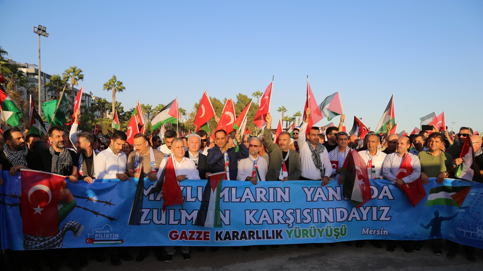 Gazze'nin sesi olmak, özgürlük filolarına destek vermek, insan onurunu ve haysiyetini ayakta tutmak için başta İstanbul ve Ankara olmak üzere 81 ilde "Gazze Kararlılık Yürüyüşü" gerçekleştirildi. Bu kapsamda Mersin Filistin Dayanışma Platformu öncülüğünde Mersin’de de bir yürüyüş düzenlendi.