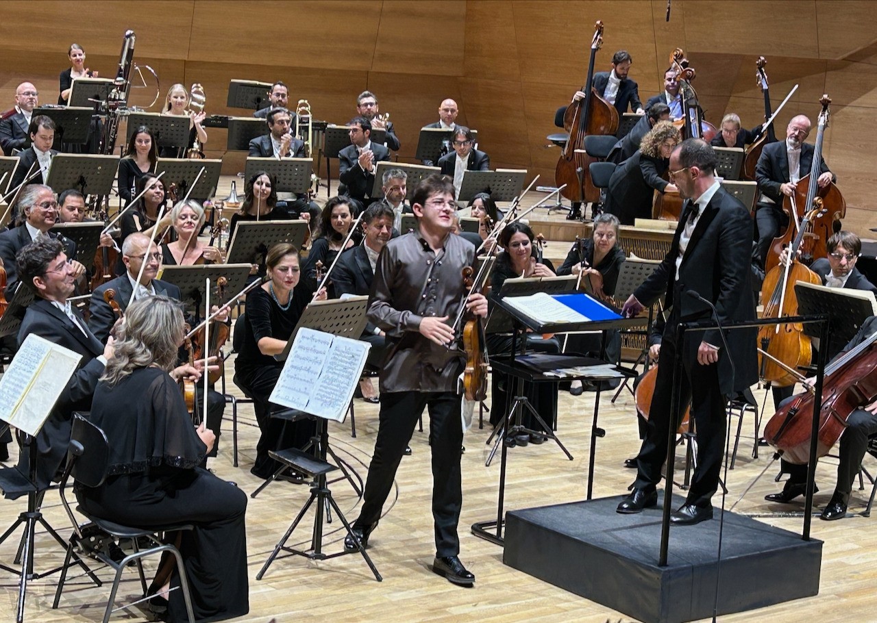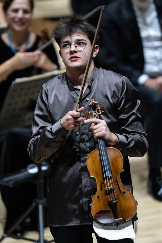 Öğrencimiz Deniz Yakın konserin “Harika Çocuk” başlıklı üçüncü bölümünde Ulvi Cemal Erkin’in keman konçertosunun Allegro con fuoco tempodaki son bölümünü büyük bir başarıyla seslendirdi.