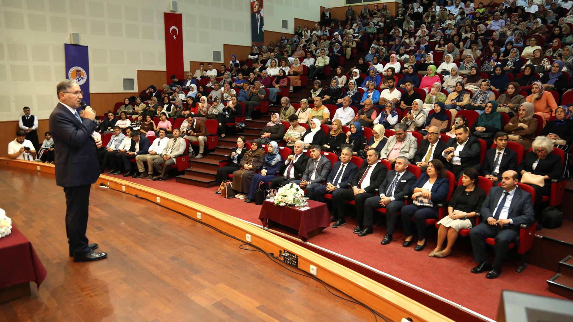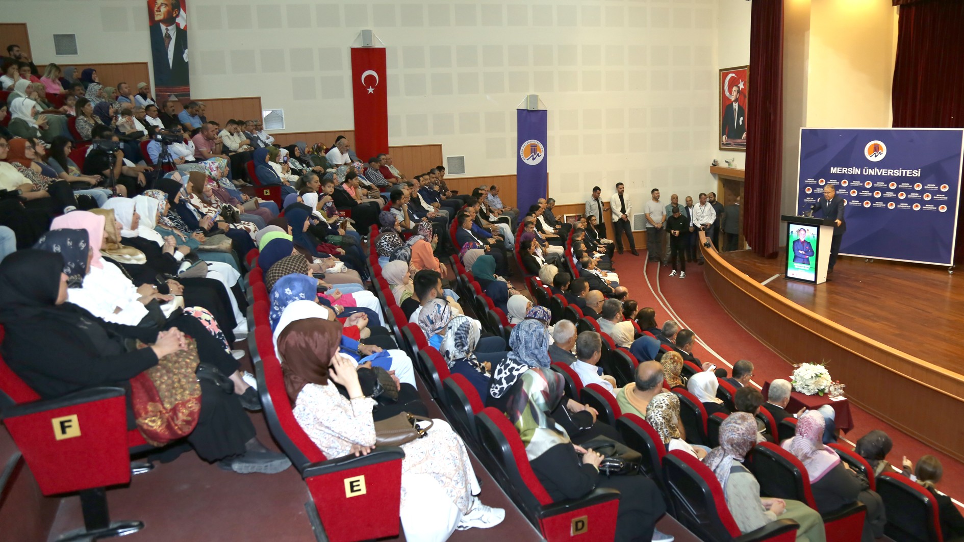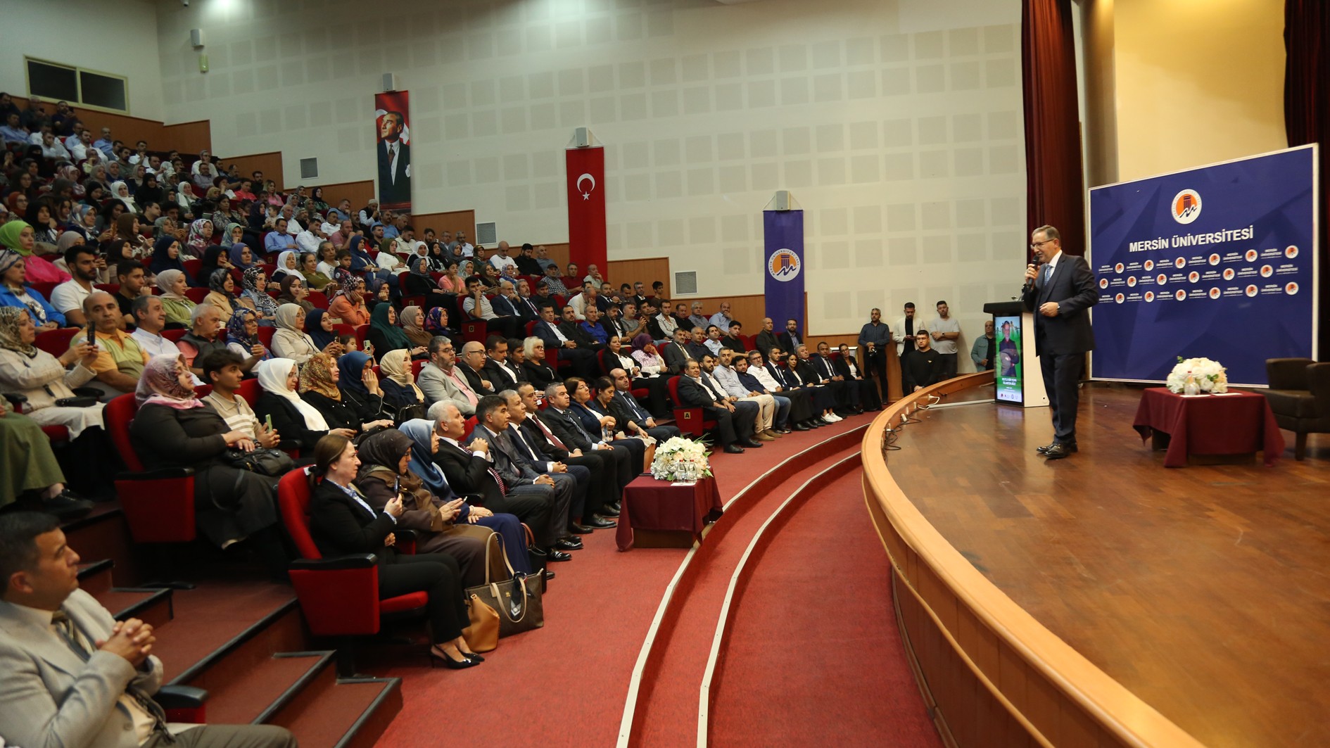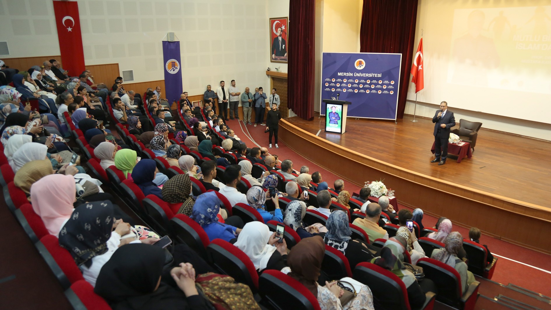 Cumhurbaşkanımız Sayın Recep Tayyip Erdoğan’ın 2025 yılını “Aile Yılı” ilan etmeleri kapsamında, Üniversitemiz ev sahipliğinde; Mersin İl Müftülüğü, Eğitim Bir-Sen Mersin 2 No’lu Şubesi ve Mersin Aile Platformu iş birliğiyle Prof. Dr. Mustafa Karataş’ın konuşmacı olduğu “Mutlu Bir Yuva: İslam’da Aile” konulu konferans 17 Ekim Cuma günü düzenlendi.