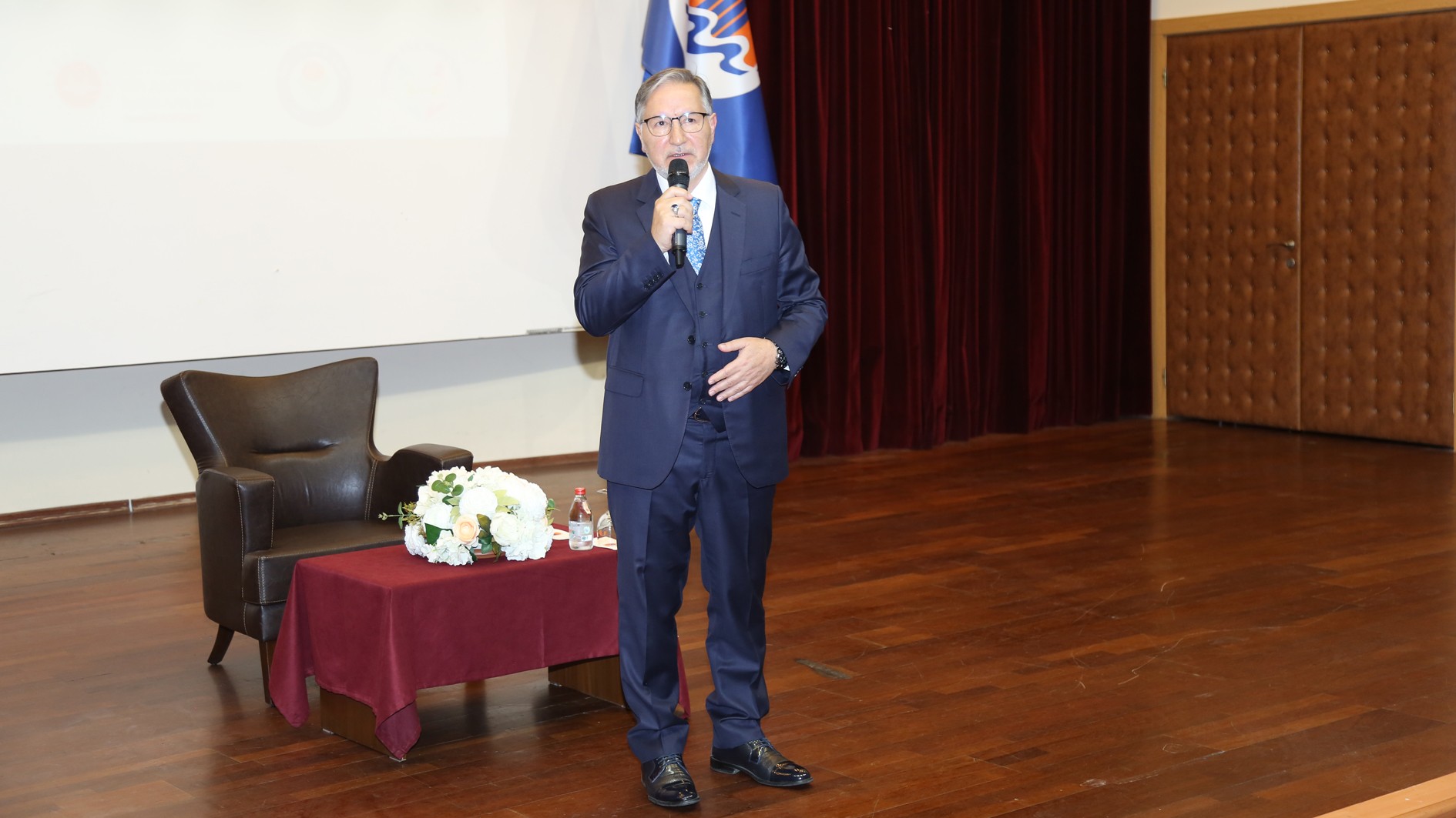 Mersin Üniversitesi olarak sadece bilimsel ve teknolojik gelişmelere öncülük etmeyi değil, aynı zamanda bizi biz yapan manevi değerleri ve toplumsal dinamikleri de gündemimizde tutmayı bir vazife bildiklerini ifade ederek konuşmasına başlayan Rektörümüz Prof. Dr. Erol Yaşar, “Bu bağlamda, 2025 Aile Yılı olarak ilan edilen bu anlamlı yılın ruhuna uygun biçimde düzenlediğimiz bu konferans, aile kurumunun kutsiyetini ve ehemmiyetini bir kez daha hatırlamak için önemli bir fırsattır. Çünkü biliyoruz ki huzurlu bireyler, güçlü toplumlar ve aydınlık bir gelecek ancak sağlam temeller üzerine kurulmuş mutlu aile yuvalarıyla mümkündür. Bugün bu önemli konuyu, engin bilgisi ve hikmetli yorumlarıyla bizlere aktaracak olan çok kıymetli ilim insanı Prof. Dr. Mustafa Karataş hocamızı aramızda görmekten büyük bir onur duyuyoruz. Kendisine, davetimizi kabul ederek bu anlamlı günde bizlerle birlikte olduğu için üniversitem ve şahsım adına en içten şükranlarımı sunuyorum.” şeklinde konuştu.