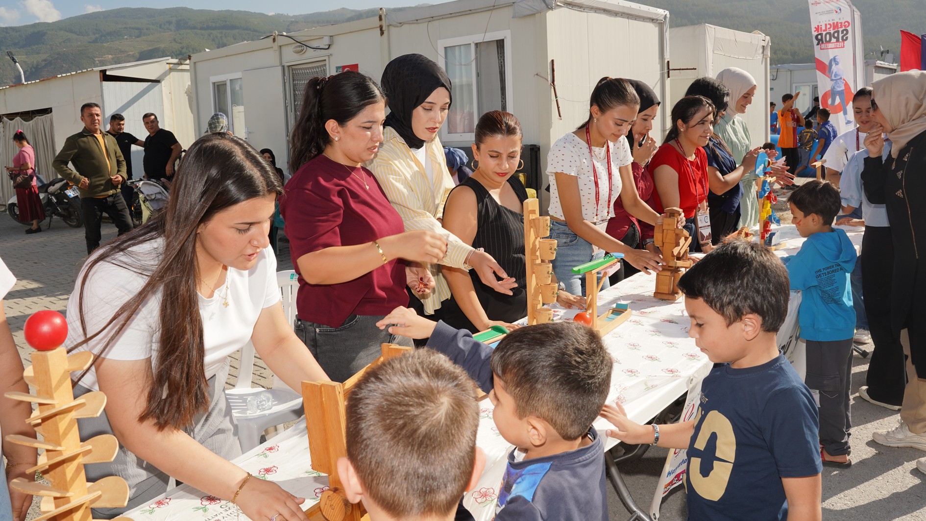 Açılış etkinliği kapsamında çocuklar için gezici kütüphane, müzik, dans, yüz boyama, taş boyama gibi çeşitli etkinlikler düzenlendi. Eğitim ve oyun materyalleriyle zenginleştirilen program, konteyner kentte yaşayan anne ve çocuklara hem moral hem de eğitim desteği sağladı.